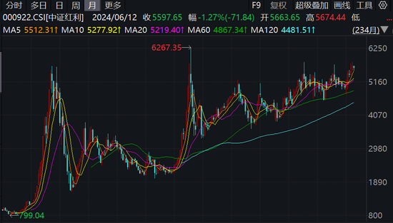 最近力场君在复盘各分类指数,看到中证红利指数(000922.CSI)真可以说是近两年来最亮的仔,从长期月K线走势来看,正直奔2015年6月的高点发起冲锋。